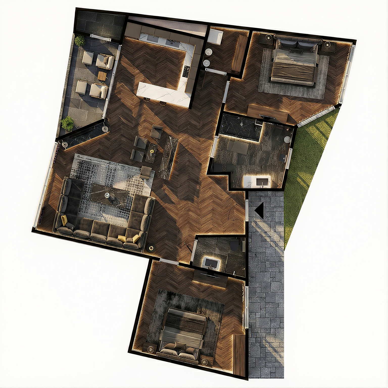Világom az innováció és a fenntarthatóság. Tereim modern és környezettudatos megoldásokkal vannak tele, amelyek tökéletesen összhangban állnak a természettel. Hatalmas zöld tetőm ideális kikapcsolódást nyújt új lakóimnak.